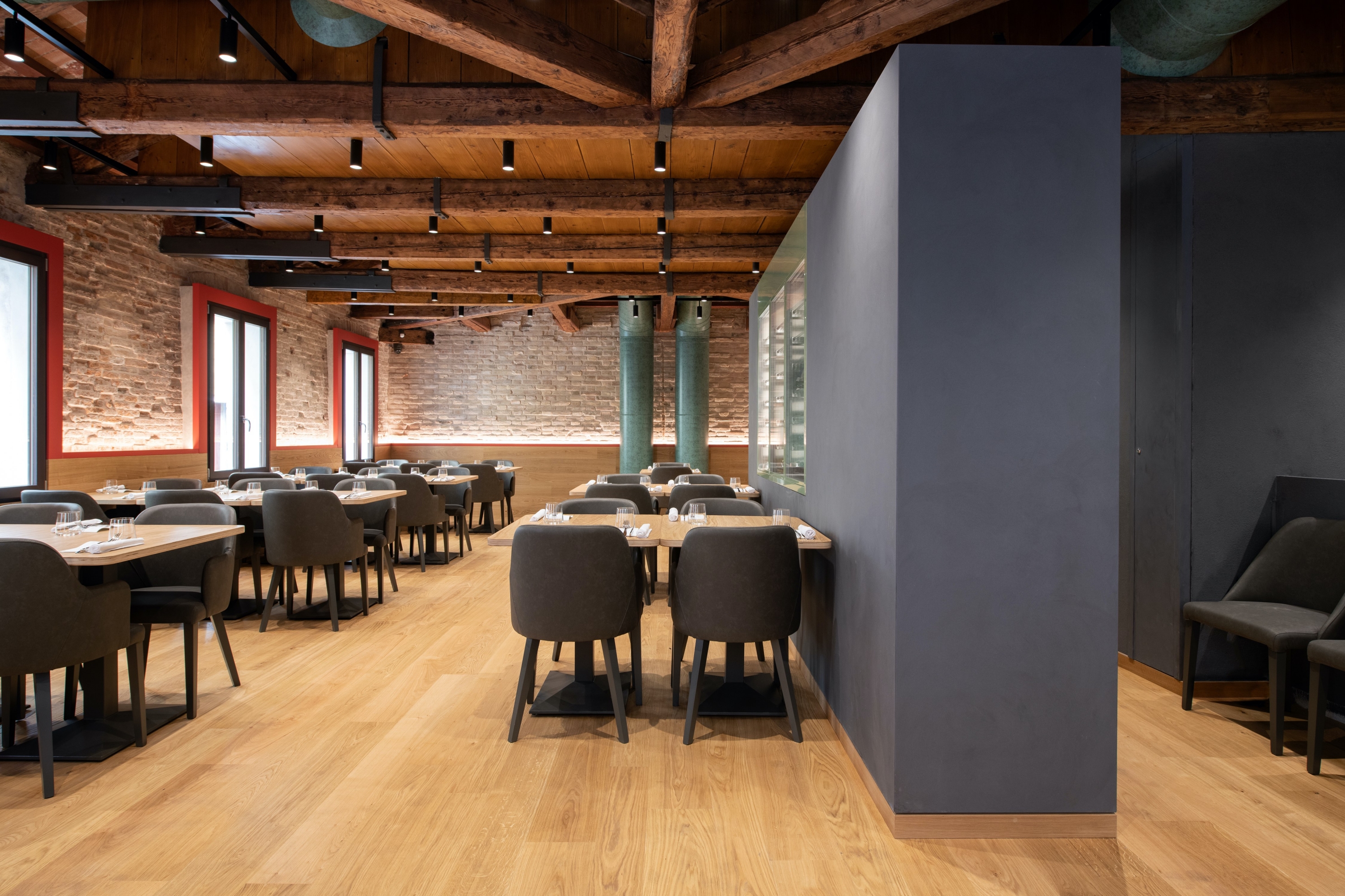 | imprese: | Opere edili e interventi di restauro: Restauri Generali Veneziani Strutture metalliche (scala): Mariuzzo s.r.l. Impianti meccanici ed elettrici: Ranzato Impianti srl Impianto estrazione fumi cucina: FCF Impianti Arredi e serramenti: Lunardelli Est. 1967 Pavimenti in legno: Woodline |